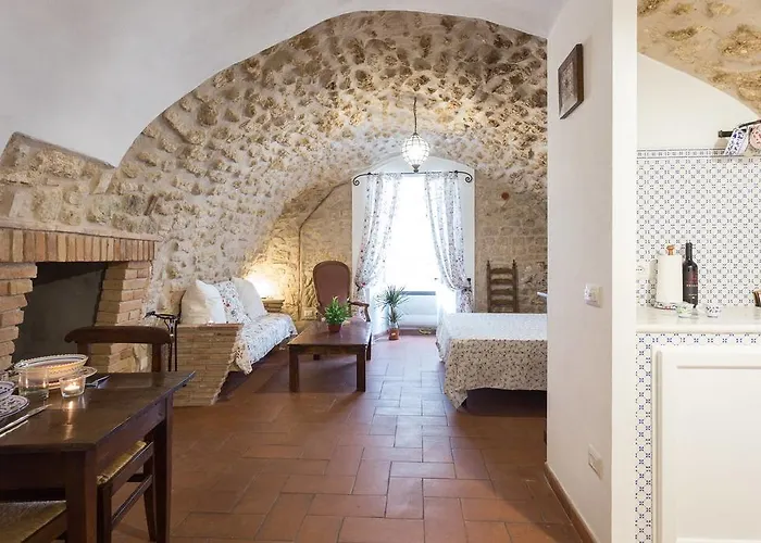 1 غرف نوم موفرة في فيلا Nel Cuore Di Narni التي تبعد اقل من 5 دقائق سيراً عن Museo della Citta e del territorio in Palazzo Eroli. الغرف تتضمن المدفأة وأريكة والتلفزيون متعدد القنوات والمطبخ والآنية الزجاجية والموقد وماكينات تحضير القهوة والشاي.